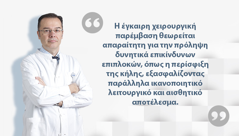 Η έγκαιρη χειρουργική παρέμβαση θεωρείται απαραίτητη για την πρόληψη δυνητικά επικίνδυνων επιπλοκών, όπως η περίσφιξη της κήλης, εξασφαλίζοντας παράλληλα ικανοποιητικό λειτουργικό και αισθητικό αποτέλεσμα.